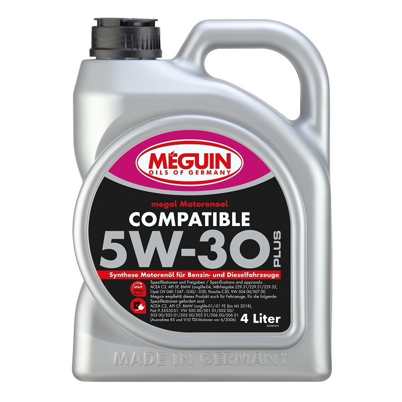 Схвалення: ACEA C3, API SP, BMW Longlife-04, MB-Approval 229.31, MB-Approval 229.51, MB-Approval 229.52, Opel OV0401547, Porsche C30, VW 504 00, VW 507 0 MEGUIN також рекомендує цей продукт: ACEA C2, API CF, BMW Longlife-01 FE (до 2018 р.в.)*, Fiat 9.55535-S1, VW 500 00, VW 501 01, VW 502 00, VW 503 00, VW 503 05, VW 505 01, VW 506 00, VW 506 01