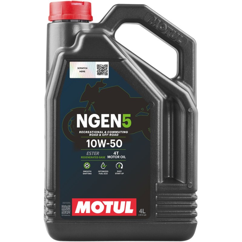MOTUL NGEN 5 — це інноваційна екологічна моторна олива на основі комбінації високотехнологічних базових олив та додатків, в формулу продукту входять синтетичні складні ефіри та високоякісні регенеровані базові оливи.